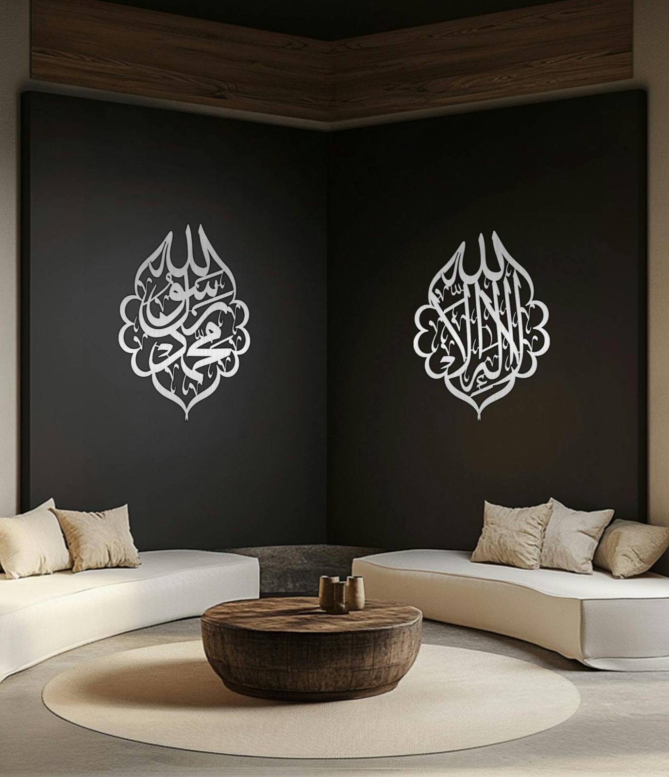 As our lights illuminate your space, let their glow remind you of the heart of our faith. For a grounding presence, our Shahada steel artworks beautifully capture the essence of belief and devotion—creating a meaningful focal point in any room.