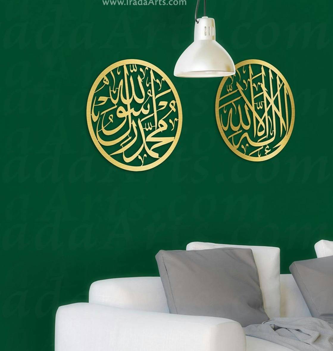 How about pairing a lighting fixture with a Shahada artwork?